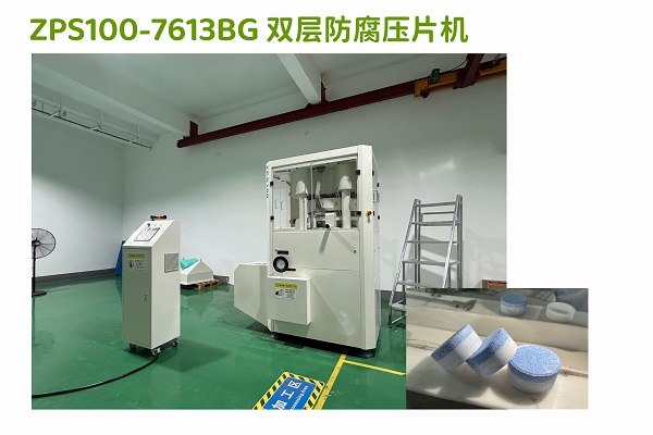ZPS100-7613BG大型防腐双层片压片机广泛应用在TCCA行业中多家大型企业和国外的大多数同类企业的200克双色三氯片压片中。